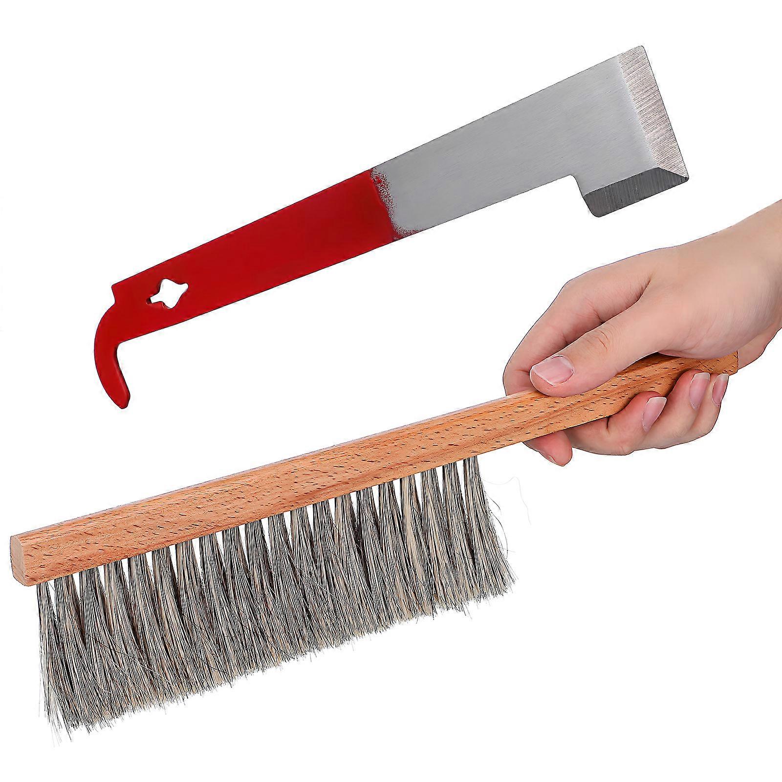 Introducing our Beehive Tool Set, designed to make beekeeping easier and more efficient! This set includes a brush and a hook, suitable for fulfilling all your beekeeping needs. Made from sturdy materials such and wood, our and hook are built to withstand frequent use. Features -Color:Assorted Color -Material:Wood, iron -Size:35.00X8.50X2.00cm/13.76X3.34X0.79in -Size:26.70X4.50X1.00cm/10.49X1.77X0.39in - Convenient and practical: This beekeeping tool set includes a brush and hook that can meet various needs during the beekeeping process. - Sturdy material: Made of metal and wood, the and hook are strong enough and not easily deformed, ensuring use. - User-friendly design: The bee keeping tools are ergonomically for comfortable and convenient use, making it easy to handle. - Multi-functional use: In addition to beekeeping, these hive tools can also be used for other household cleaning tasks. - Simple and easy to operate: The bee hive brush and hook are easy to use, even for beginners, with simple and straightforward designs. Package list: 5 x brush 5 x hook
