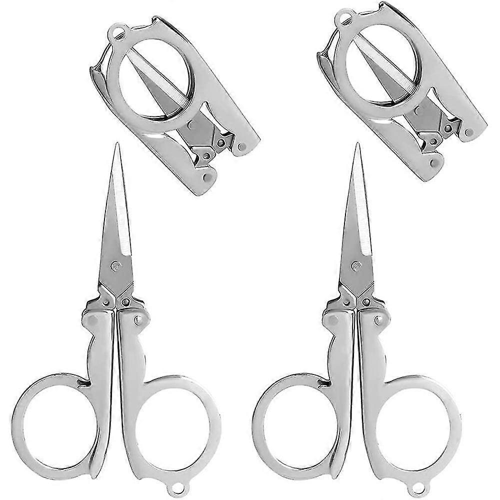 Hjyang Stainless Steel Folding Scissors, 4 Inch/10cm Mini Small Paper Scissors Portable Foldable Travel Scissors Metal Scissors For Paper Craft 4pcs