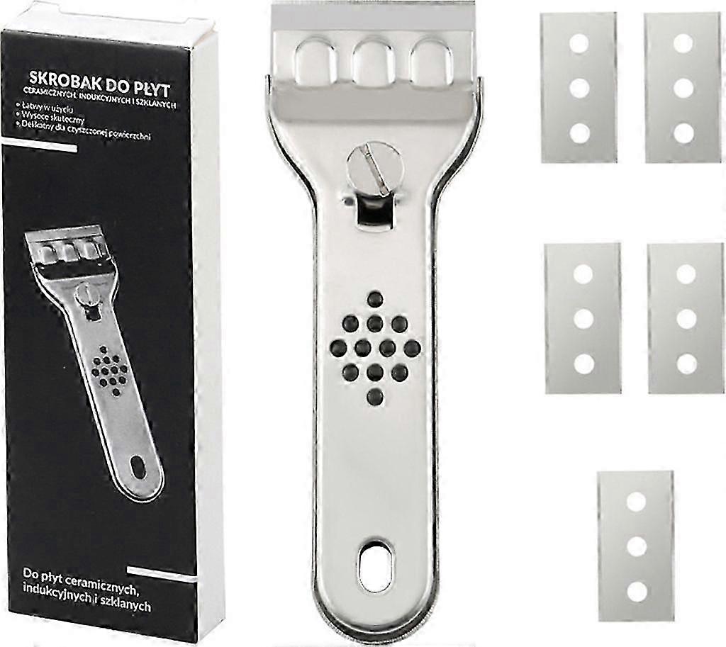 Hob scraper with 5 replacement blades, stainless steel scraper, hob scraper, stovetop and oven scraper