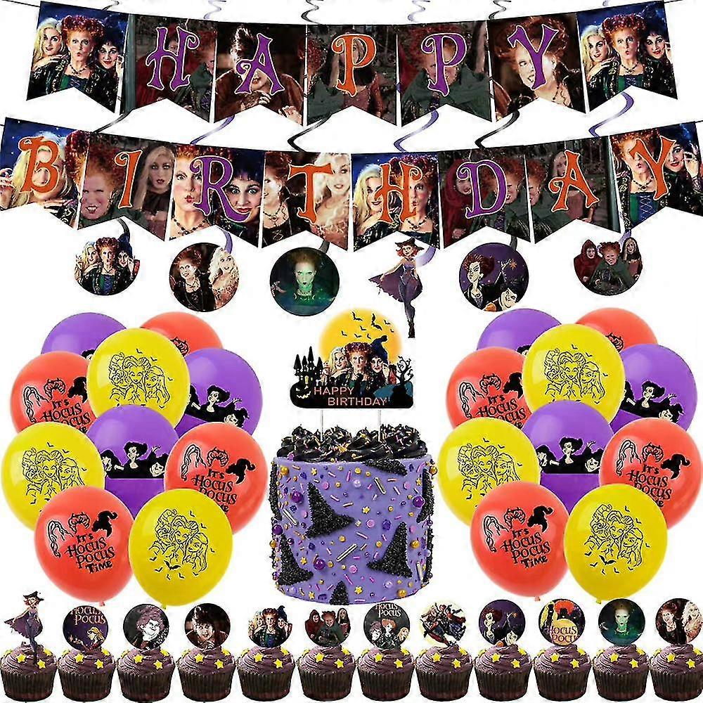 Hocus Pocus Theme Birthday Decoration Balloons Banner Cake Topper Hanging Swirls Set Party Supplies