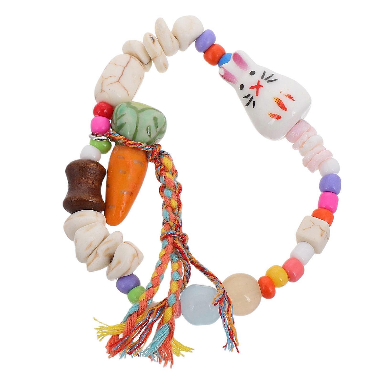 Bring a festive touch to your ensemble with this charming Easter bracelet, adorned with bunny and carrot motifs. The ceramic and natural stone construction offers a unique and stylish look, while the colorful rope adds a playful element. Ideal for Easter parties and gatherings, it enhances your holiday spirit and showcases your love for the season. Features -Color:Multi -Material:Rope+ceramic+stone -Size:9.00X6.00X2.00cm/3.54X2.36X0.79in -Festive bunny design: celebrate easter in style with this festive bunny bracelet, designed to bring a joyful and charming touch to your holiday attire. -Unique carrot accent: the unique carrot accent adds a playful and eyecatching element to the bracelet, making it a fun accessory for all ages. -Adjustable fit: featuring a colorful elastic cord, this bracelet can be easily adjusted to fit any wrist size, providing a comfortable and secure fit. -Versatile and stylish: the bracelet's versatile design makes it a great accessory to complement any outfit, whether you're dressing up or keeping it casual. -Durable materials: made with natural stone and ceramic beads, this bracelet ensures durability and that lasts Package list: 1 x Easter bunny bracelet
