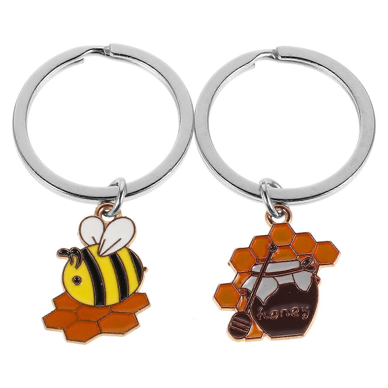 Honeycomb Bee Themed Party Keychain for Couples with 2Pcs Cute Design