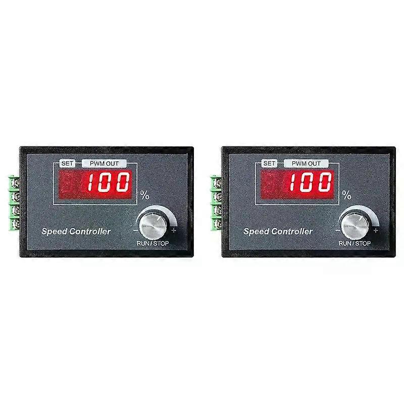 Hot Cake2X PWM DC Motor Speed Controller 6-60V 30A With Digital Display & Robust PCB - Perfect For Various Machines _x000D_ _x000D_ _x000D_ _x000D_ Wide Voltage Adaptability: This PWM motor speed controller caters to a plethora of DC supplies ranging from 6V to 60V, thereby serving as an perfect fit for motors operated at 12V, 24V, 36V, and 48V. Its capacity to manage substantial output currents up to 30A makes it a versatile player in motor control. _x000D_ Intuitive Digital Display: Equipped with a clear and informative LED display, this speed regulator effortlessly communicates the current speed in percentage and the peak speed attainable. This feature simplifies monitoring and adjusting speeds, providing a user-friendly interface for seamless operation. _x000D_ Effortless Setup: Designed with practicality in mind, the controller features easy-to-connect screw terminals that ensure a secure wiring setup. It also incorporates an accessible start/stop button alongside a variable speed control potentiometer, promoting hassle-free adjustments during operation. _x000D_ Durability and Safety: Constructed using premium PCB material, the controller guarantees robustness and exceptional wear resistance, which ensures its longevity. This durable build, coupled with precise control mechanisms, significantly enhances the safety and stability of motor operations. _x000D_ Versatile Usage: It proves to be an essential tool for optimizing performance in various devices such as lawn mowers, tape cutters, blowers, and cotton candy machines. By providing precise speed adjustments, it meets the diverse operational needs in both domestic and commercial environments. _x000D_ _x000D_ Colour: Photo Color _x000D_ Material: plastic _x000D_ _x000D_ Package Contents: _x000D_ 2x Motor speed regulator _x000D_ _x000D_ Only the above package content, other products are not included. _x000D_ Note: Light reflection and different displays may cause the color of the item in the picture a little different from the real thing. The measurement allowed error is +/- 1-3cm. _x000D_ _x000D_ _x000D_ _x000D_ _x000D_ _x000D_ _x000D_ _x000D_ _x000D_ _x000D_ _x000D_ _x000D_ _x000D_ _x000D_ _x000D_ _x000D_ _x000D_