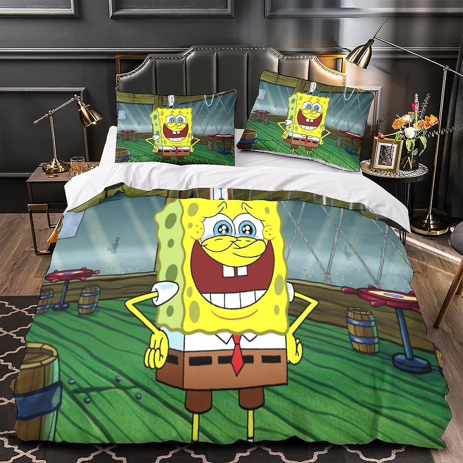 HOUKIG Spongebob for Boys Girls Quilt Cover 3D Printed Anime Characters Duvet Cover Comforter Covers with Zipper Closure Bedding Set Soft Microfiber w