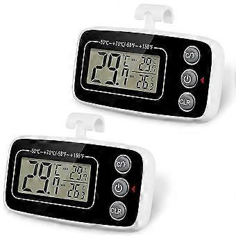 مقياس حرارة الثلاجة، مقياسان للحرارة مقاومان للماء للفريزر مع خطاف للاستخدام المنزلي (أبيض وأسود)