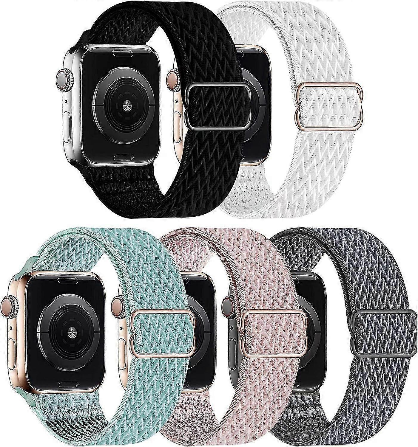 HUUOGUO 5 Packs Nylon Stretch Band Compatible with Apple Watch,Adjustable Soft Sport Breathable Loop for Iwatch Series 7/6/5/4/3/2/1/SE,Black/White/Ma