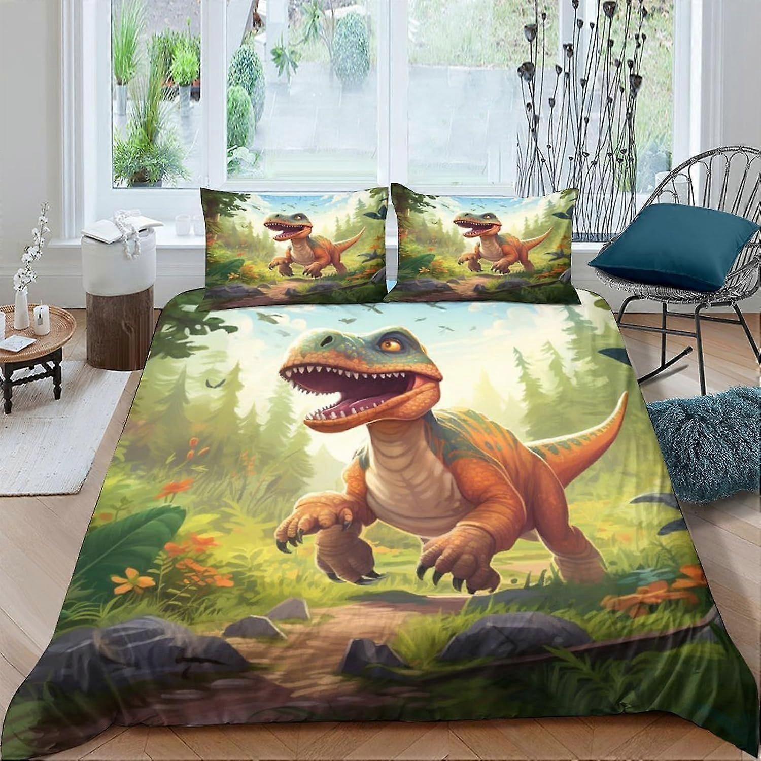 i175 Dinosaur Duvet Set Bedding, 3 Piece Set Duvet Cover Easy Care, Quilt Cover Pillow Cases with Zipper Closure Soft Microfiber Double u175