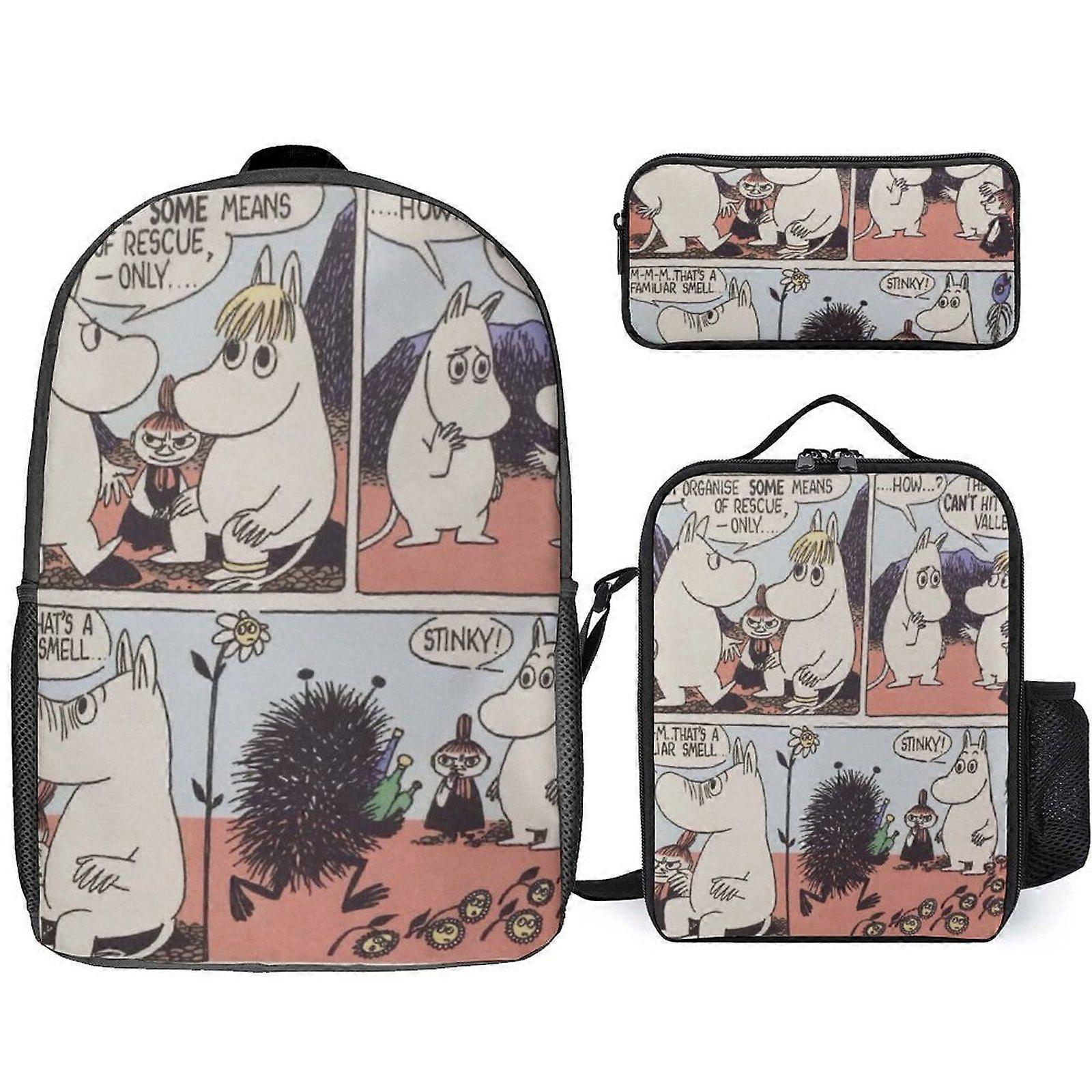 i5346 Moomin Falls in Love Comic Strip Backpack Study Buddy System Three Piece Academic Combo with Organized Pencil Portfolio w5346