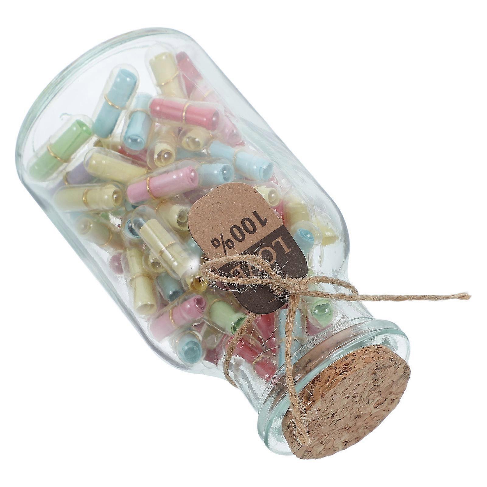 Create a unique present with these mini jars with lids. ideal for DIY projects, these jars can be filled with message pills, tiny origami, or sensory items. The lids keep the contents secure, let them ideal for storing heartfelt messages or blessings. These jars are a charming way to show your . Features - Color: Multi -Material:Glass - Size: 11.00X5.70X5.70cm/4.32X2.24X2.24in - Size: 2.00X0.80X0.80cm/0.79X0.31X0.31in - Size: 6.00X1.80X0.02cm/2.36X0.71X0.01in -Innovative capsule : the unique design of the capsule decoration brings creativity and surprise to any occasion -Heartfelt messages: the blank paper inside the capsule is ideal for writing romantic and friendly messages -Home decor and storage: this is not only a charming decoration but also a practical storage option for small items -Versatile present: ideal for couples, friends, and family on special occasions such as birthdays, christmas, and graduations -Personal diary: the paper can be used to write down wishes, daily emotions, or secrets, let it a personal diary Package list: 2 x 100 x capsules