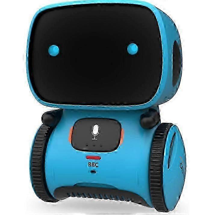 [TouchControlandVoiceControl]TheRobotwillgoforward or back,turnleft or rightwhenyoutouchthesensingarea,easytocontrolandenjoy Youcanordertherobotwhentherobotisinvoice-controlledmode,therobotwillrespondtoyouaccordingtoyourcommand. [SpeakLikeYouandRecord]longpressthesensingareauntilhearasound,itmeansitenterstheSpeakLikeYoumode,therobotwillrepeatyoursaying PresstheTalkingRecordingbuttonuntilhearasound,itmeansitenterstheRecordmode,youcantakea8secondsrecording.Morefuntoplaywithyourpartner. [DancingandSinging]Thislittleguycanbecomeyournewdancepartnertobrightenyourdayandthrillfriends.Provideshoursoffunandgiveschildrenexperiencewithroboticsandadvancedtechnology. [VolumeAdjustmentandSmartSize]7volumeforkidstoselect,canchooseasuitablevolumeforkids 3.9 x 3.7 x 5.1inch,easytocarryanywhere.Required3 x AAAbattery(NOTINCLUDED).