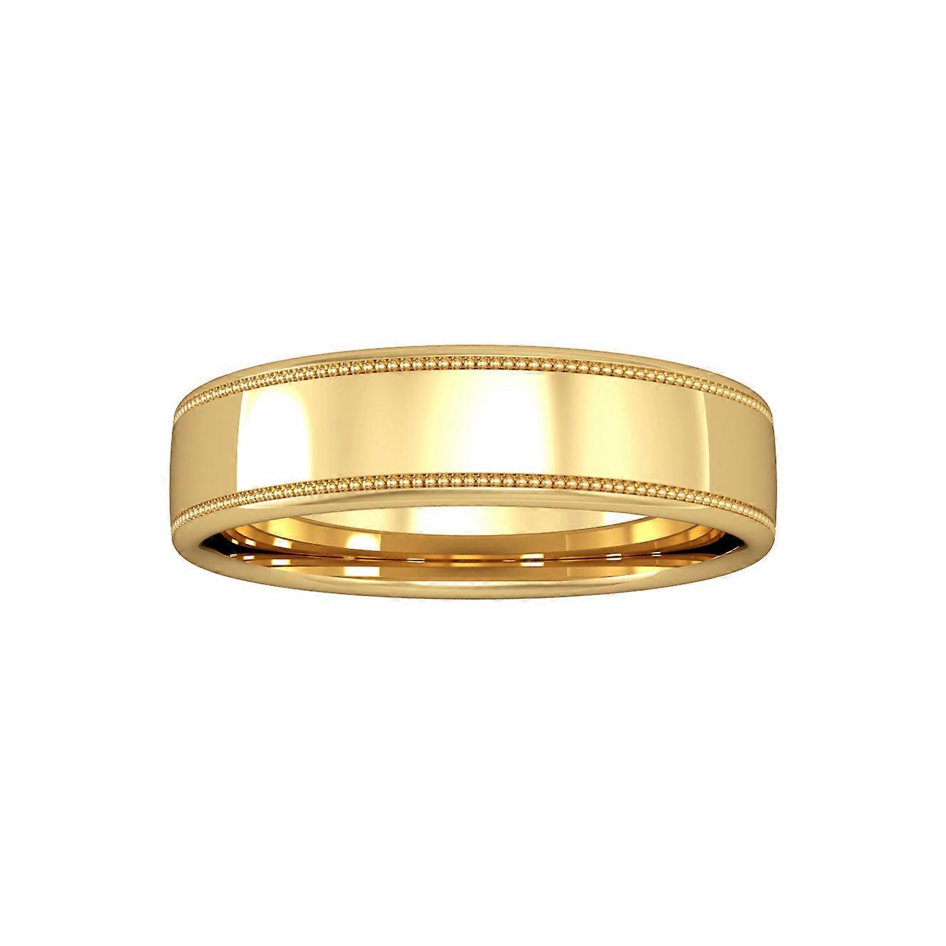 Jewelco London 18ct Yellow Gold 5mm Bombe Court Mill Grain Wedding Ring