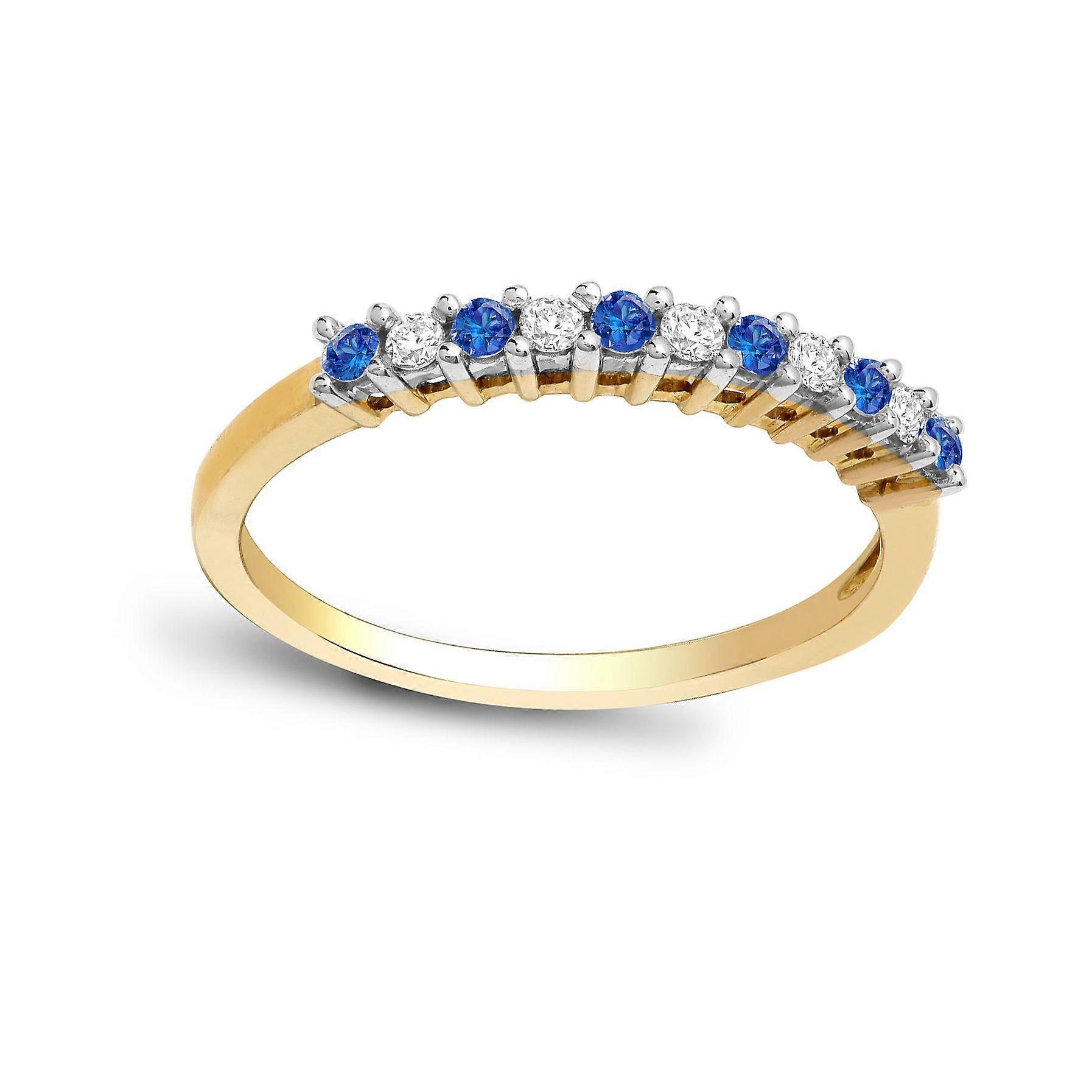 Jewelco London 9ct Gold H I1 0.1ct Diamond and Blue 0.15ct Sapphire 11 Stone Royal Eternity Ring 2mm