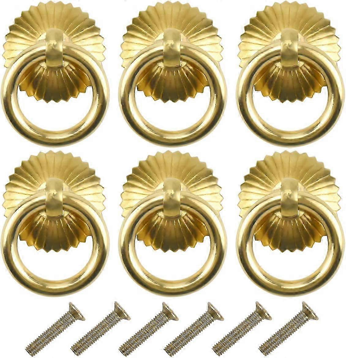 JiaWei 6 pcs Vintage Furniture Handle, Drawer Ring Pull Handle, (Brass) 3.5cm Ix3
