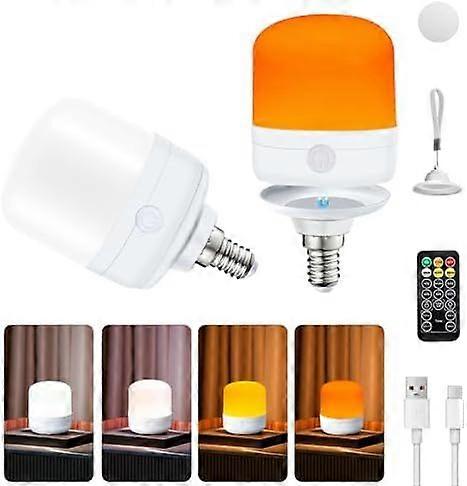 Joyes USB-C Rechargeable Lamp 2 Pcs Battery Powered E14 Bulb with Dimmable, 4 Color Temperatures, Timer, 7W Detachable LED for Non Hardwired Lamps, W