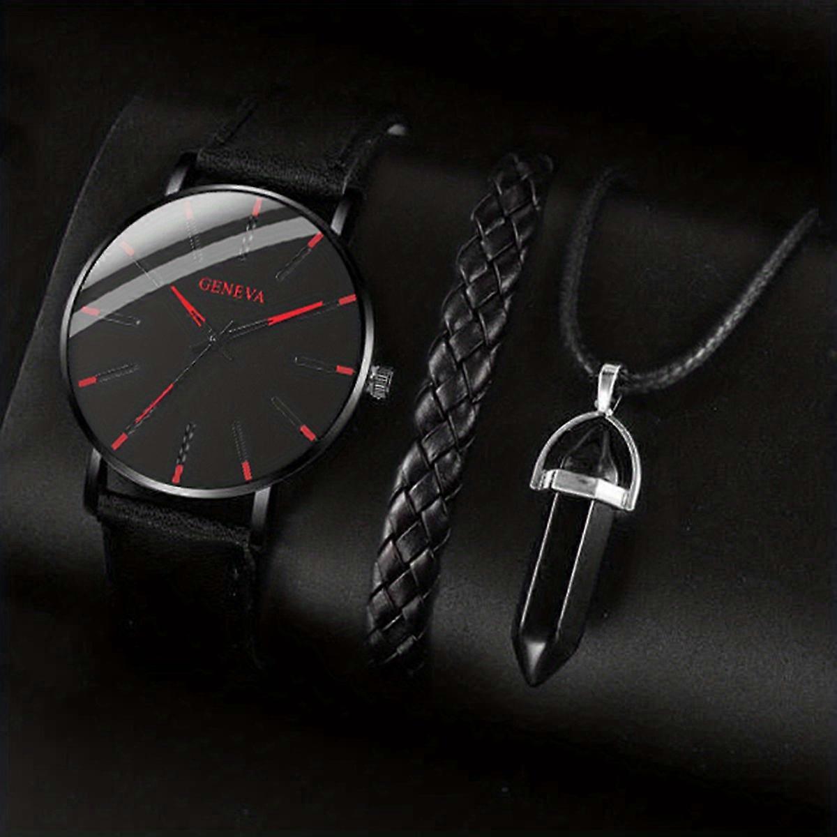 JUEGE* 3pcs/set 1 Round Men's Quartz Watch And 1 Bracelet 1 Necklace, Ideal choice for