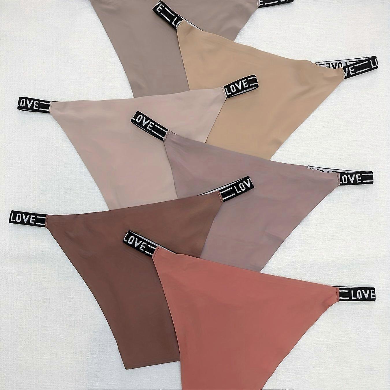 JUEGE* 6pack Seamless Letter Belt Thong Panties, Comfortable & Breathable Elastic Briefs, Women's Lingerie & Underwear