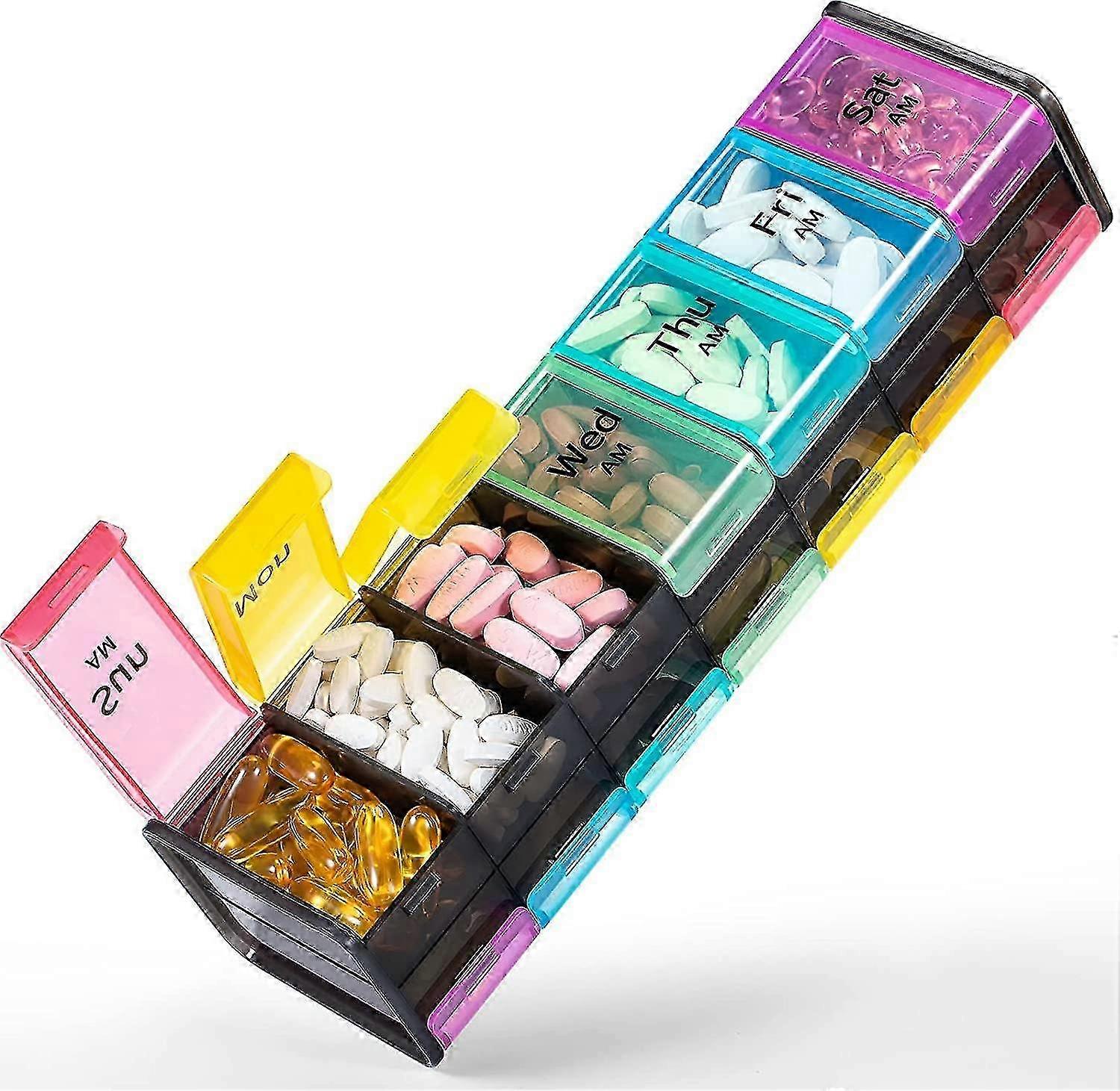 Jumbo 7-Day Pill Box with Am/PM Dividers and Double Layer Organizer for Vitamins and Pills