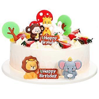 Jungle Theme Soft Animal Cake Toppers Featuring Elephant, Lion, Monkey, Giraffe, Rabbit, Mushroom, and Tree Figures for Birthday and Shower Party