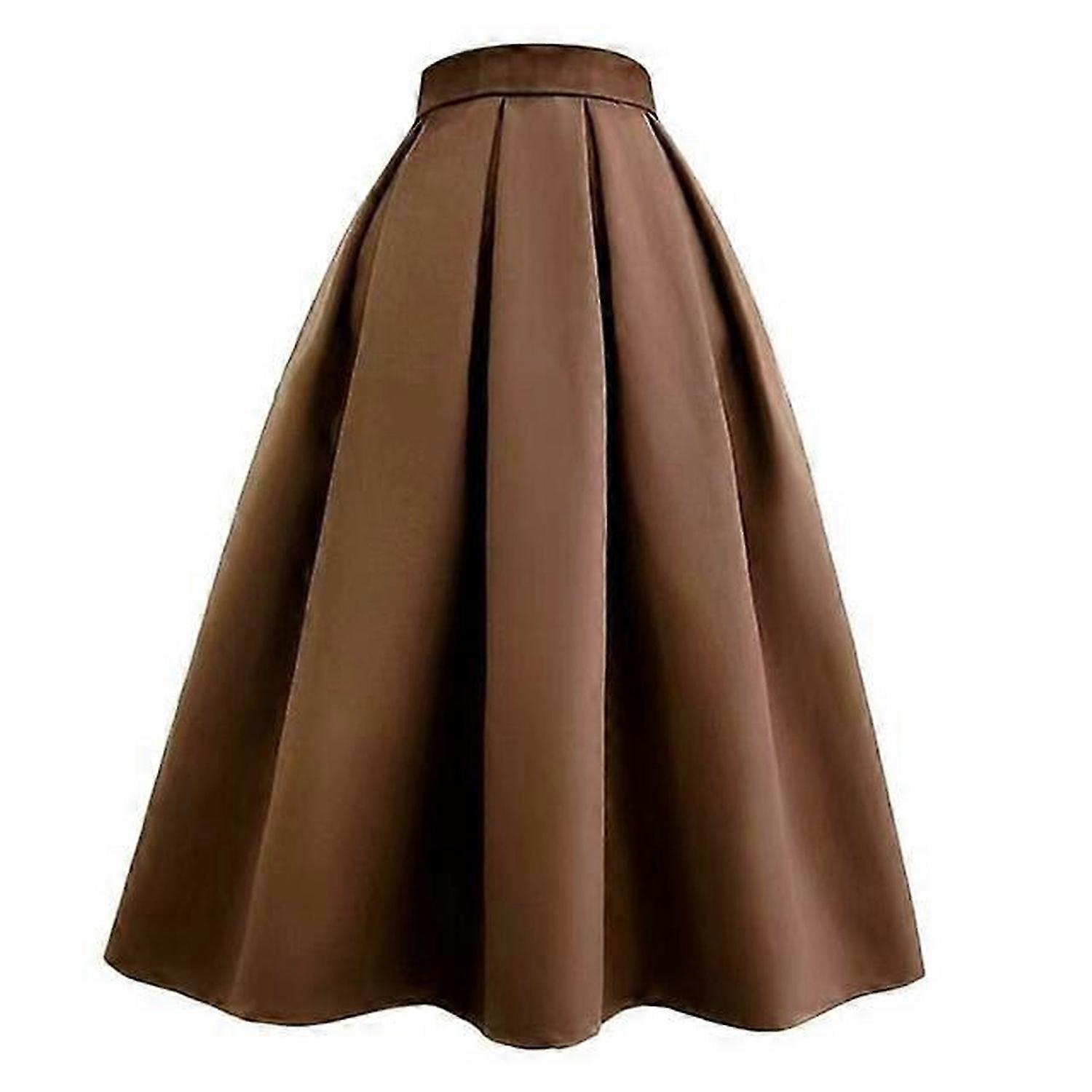 JWL- Autumn Winter Vintage Elegant Classic Women Brown Basic Color High Waist Long Pleated Woolen Skirt Office Lady OL Work Wear