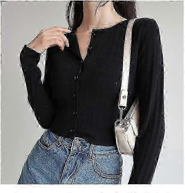 JWL- Spring Sexy Low-cut V-neck Long-sleeved Knitted Cardigan Womenn Short Thread T-shirt Navel Bottoming Shirt Tight Top