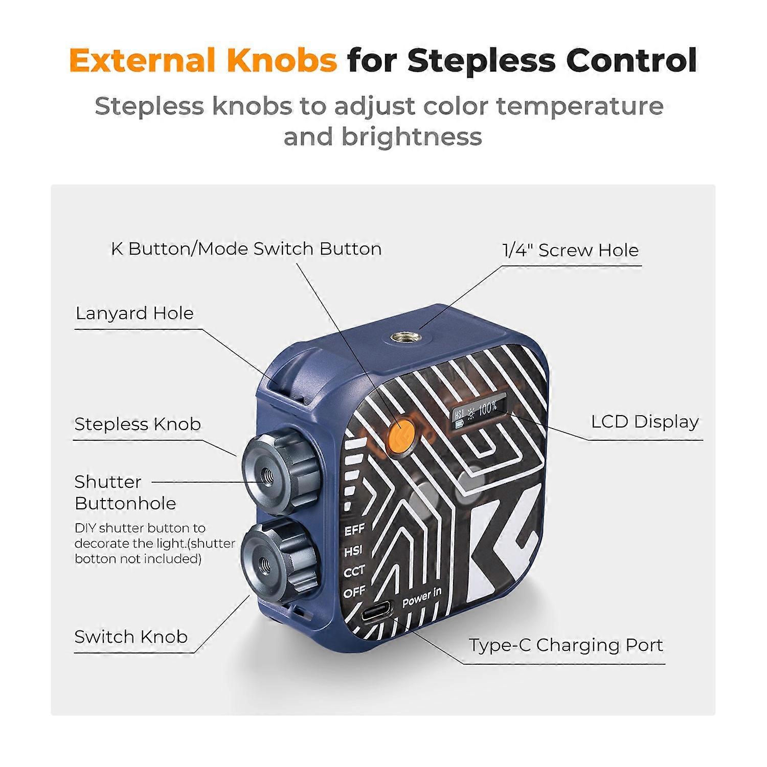 K&F CONCEPT Pocket RGB Video Light Magnetic LED Fill Light Video Conference Lighting CRI96+ 2500K-99