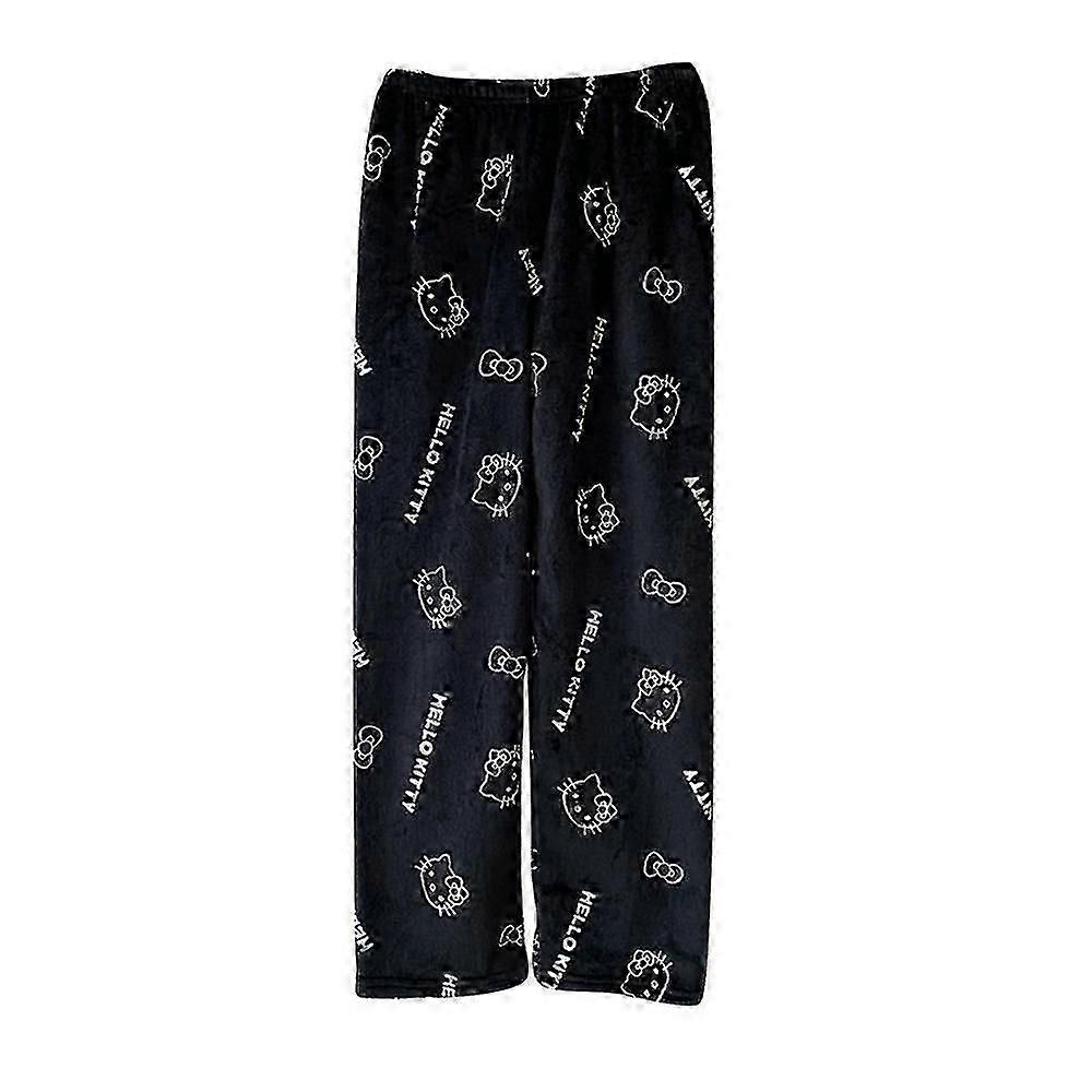 Kawaii Fleece Pajamas Pants For Women Girls Christmas Cartoon Cat Kitty All Over Print Soft Flannel Loungewear Xmas Sleep Pyjamas Trousers