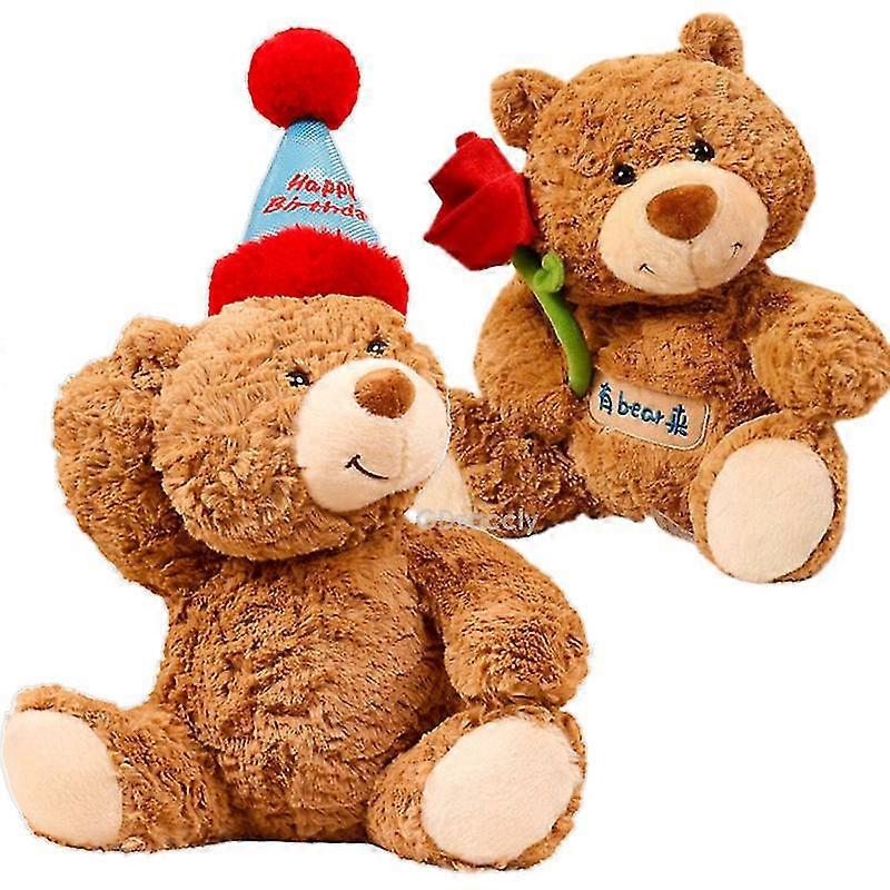 Kawaii Dress Happy Birthday Hat Brown Bear Plush Toy Stuffed Red Rose Bear Confession Valentine's Day Plushie For Girl Boy Gift