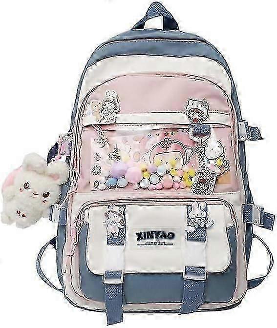 Backpack for Girls, Kawaii Backpack Cute Aesthetic Backpack with Pin Accessories Plush Pendant, 17.7 Inch Backpack for School & Travel - Durable, Wate