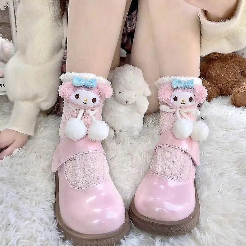 Kawaii Sanrio Anime Socks Cute My Melody Kuromi Hello Kitty Coral Velvet Thickening Middle Cylinder Socks Girls Christmas Gift