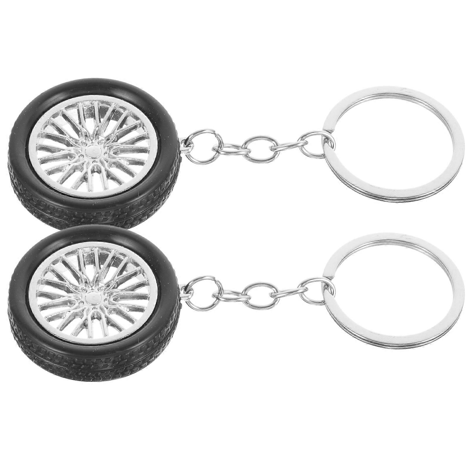 Key Chain Car Keys Tire Shape Round Stylish Decorations Multi 2Pcs