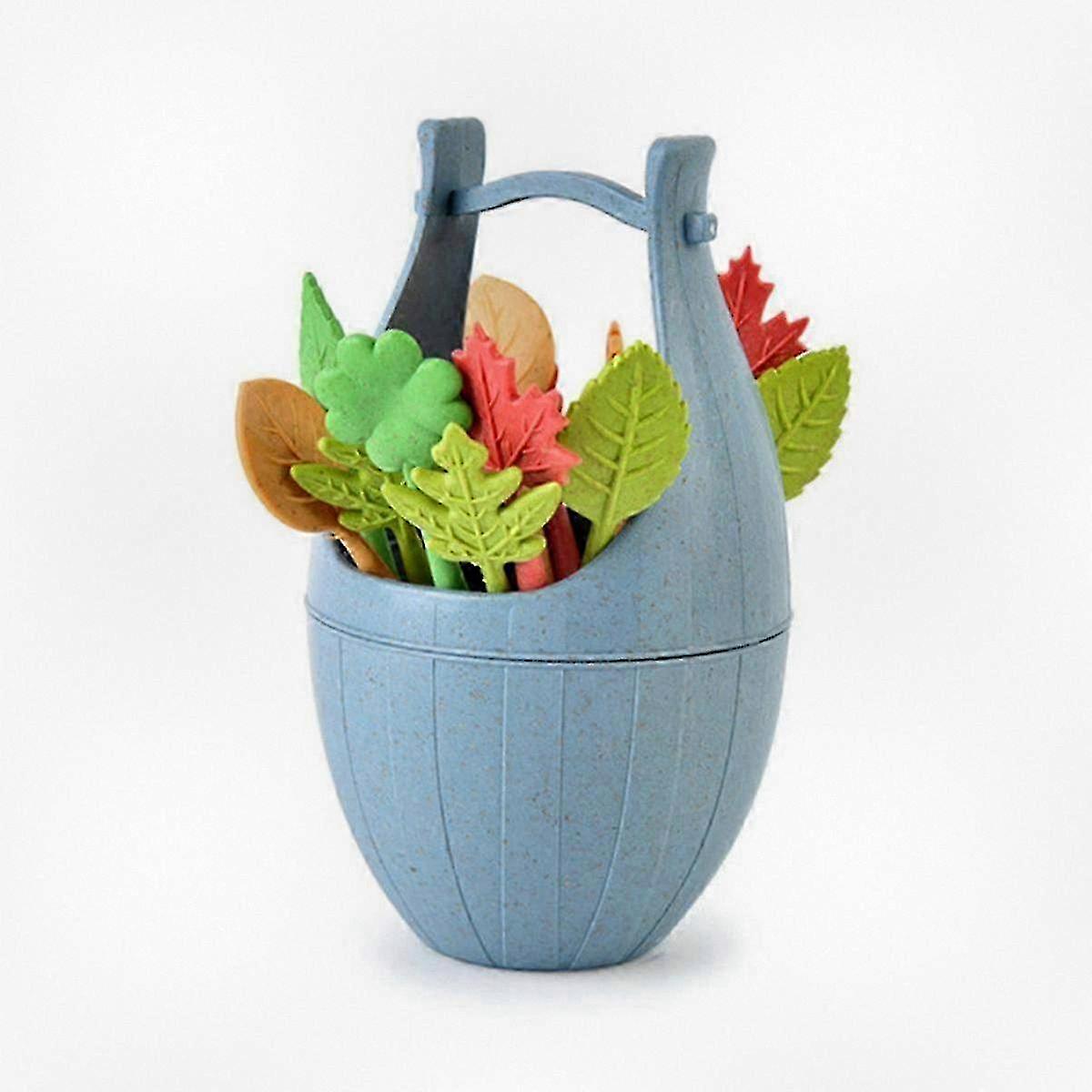 kids reusable wheat straw fork set with storage container for snacks fruit and dessert, bento box accessory, mini picks, blue