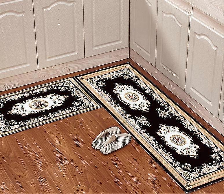 KINZON (Black)2pcs Crystal Velvet Non-Slip Kitchen Floor Mat, Waterproof and Oil-Proof, Can Be Scrubbed