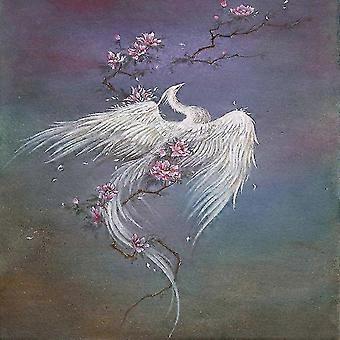 KINZON مجموعة طلاء ماسية 30 × 40 سم للأطفال -Phnix blanc sur une Branche de Prunier، مطرزة بالألماس، مجموعة طلاء على المرحاض والرصيف