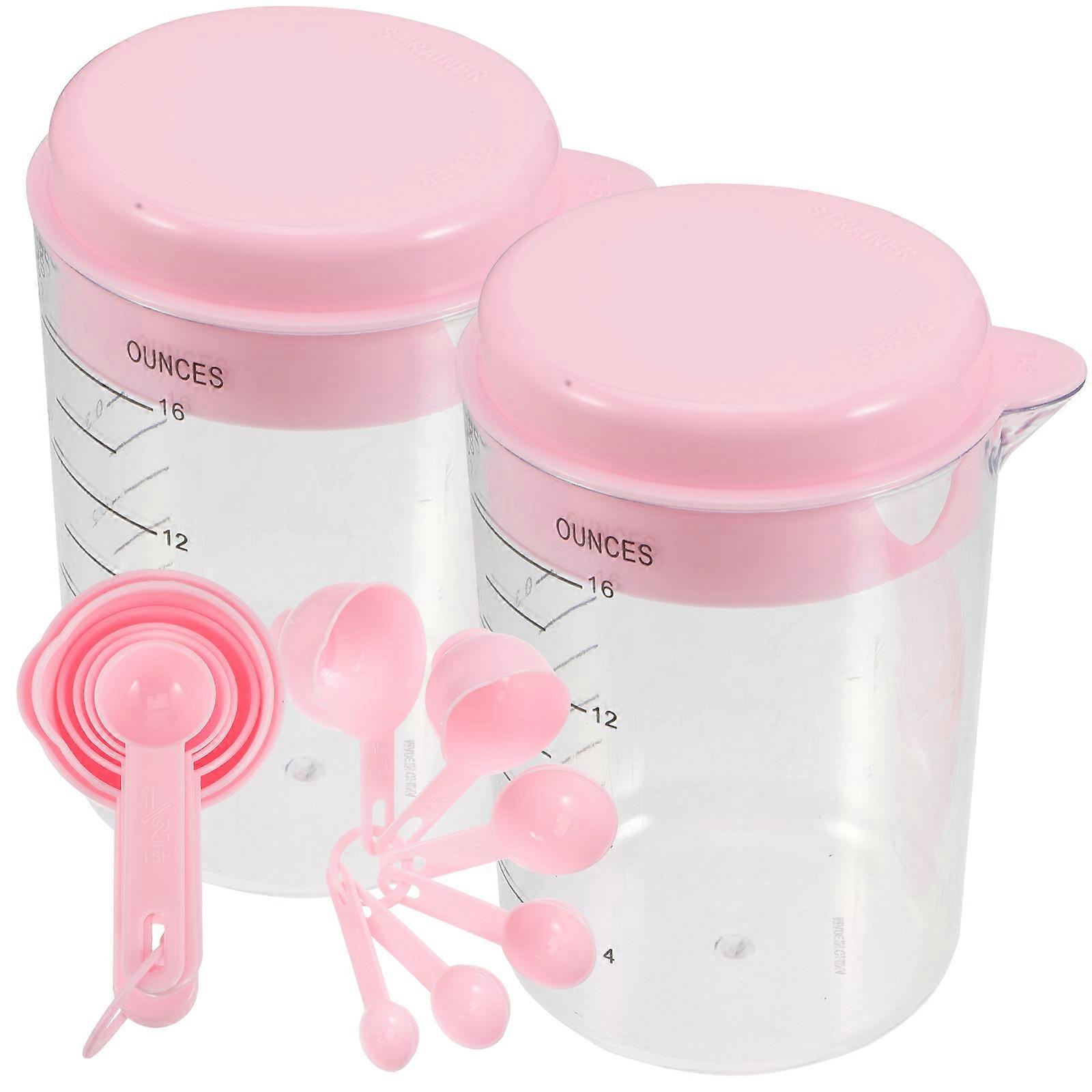 Kitchen Measuring Cups Measuring Spoons for Baking 2Sets Pink Plastic Material