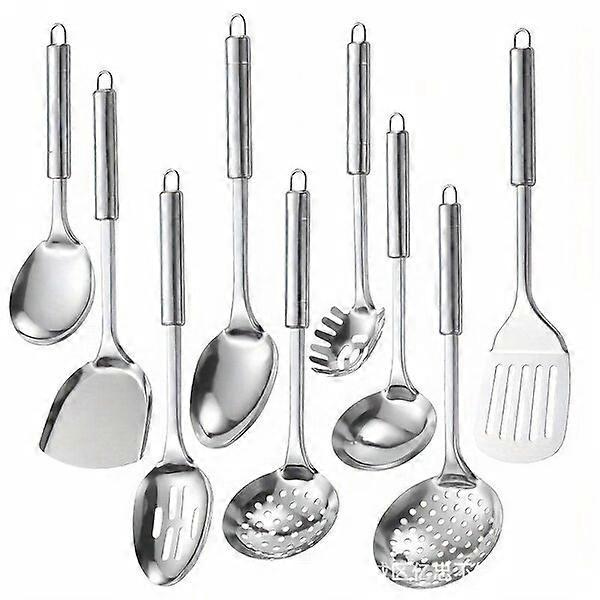 ①. Kitchen utensil set. ②. Material: stainless steel ③. Quantity: 9 pcs.