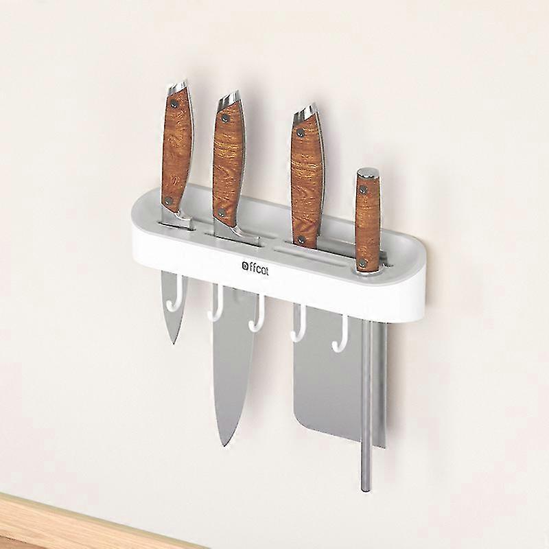 Knife Block Holder Wall, Knife Organizer Storage Shelf Rack Bar with Slots, Sharpening Rod Hooks