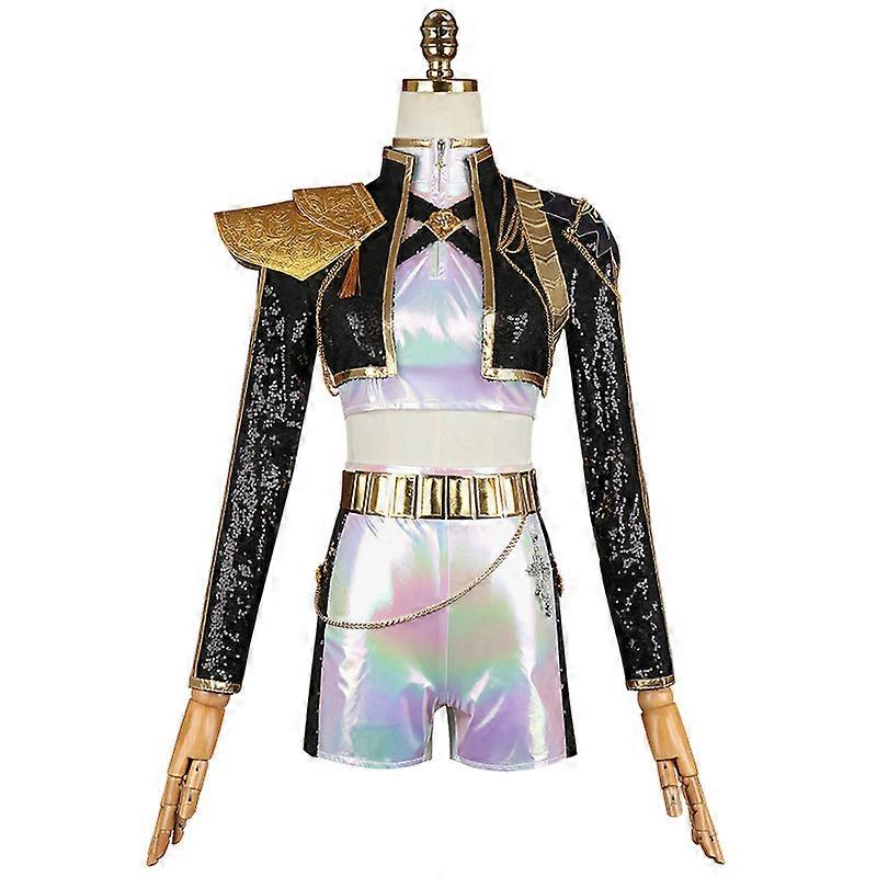 Kpop Demon Hunter Girl Group Cosplay Costume Lumi Zoe Mila Black Gold Performance Outfit Anime Game Roleplay Polyester Rock Style Streetwear