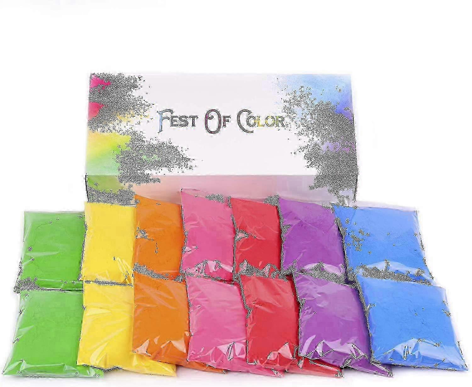 7 VIBRANT COLOUR POWDER which comes from Rainbow power Individual holi powder packets with seven different vivid colours: Pink, Blue, Red, Green, Yellow, Orange, and Purple holi powderEASILY TEARABLE PACKETS and HIGH-QUALITY BOX 14 packets, Each of 50 grams holi colour powder. Enough amount for events. Become popular on social mediaSKIN-FRIENDLY FestOfColor provides the best quality of non toxic holi powder. Our bright coloured powder packets are made with percent 100 food-grade cornstarch and food dyes. Safe for skin, non-toxic, and biodegradable. Feel free to enjoyPERFECT FOR ANY OCCASION Holi Festivals, Colour Wars, Photoshoots, Smoke for Photography, Rangoli, Colour Runs, Birthday Parties, Gender Reveals, Summer Camps, Powder Paint, Chalk, Fun Runs, Colour Bombs, and Colour Races. Dont forget to take photograph and share itEASY TO CLEAN Shake off holi colours while dry, and take your daily shower or two.
