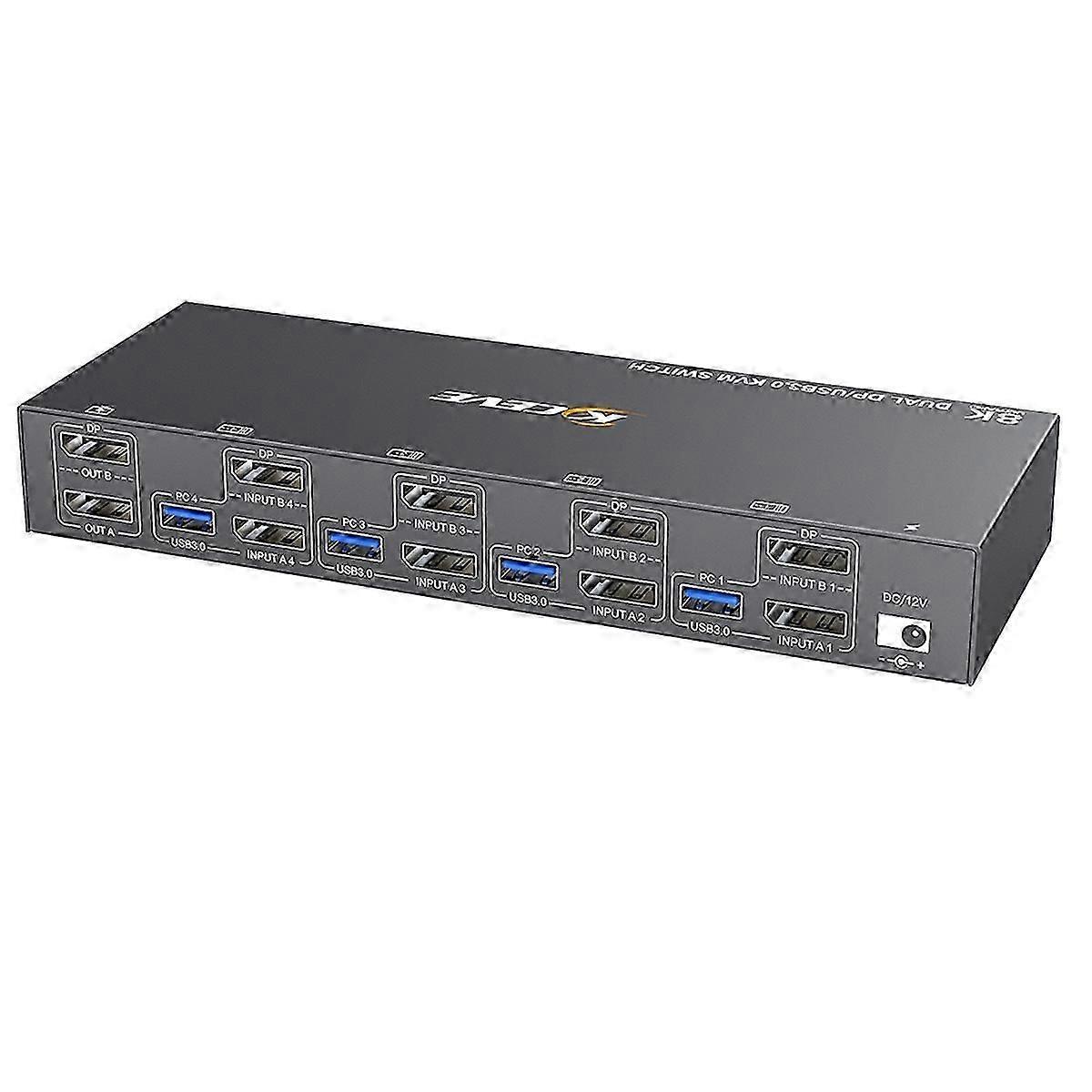 [ DP Port KVM Switch For 4 Computers 2 Monitors]This is a perfect dual monitor KVM switch for DP ports device to share keyboard mouse and monitor. In copy mode the main screen can be copied to the second output screen. In extend mode, the window from the main screen can be dragged to the second output screen. [ 4 PC 2 Monitors KVM With 4 USB 3.0 USB Ports]This 4 in 2 out KVM USB 3.0 switch with 4 USB 3.0 port for sharing mouse, keyboard, USB printers, scanners, etc,. USB 3.0 transmission is more stable and faster, if you are looking for a USB 3.0 version KVM switch this will be a good choice! [Input and Output Converter]Input: Support MINI DP to DP Cable, USB-C to DP Adapter, USB-C to Dual DP Dock. Not support to DP, DVA/VGA to DP. Output: Support DP to Cable. Not support DP to USB-C/DVI/VGA. [4 Computers 2 Monitors KVM Switch Support 8K]Support high resolution of 8K@30Hz, 4K@144Hz, please use DP 1.4 cable to achive 8K@30Hz and 4k@1440Hz resolution. 3 USB cables provided, please prepare the rest DP cable yourself. [ Plug and play]Plug and play, drive-free, this 4 computers 2 monitors kvm switch is widely used in many occasions, such as office, conference, teaching, performance, live broadcast, home theater, etc. Plug Type: EU Plug,it applies to Indonesia, Germany, France, Spain, Italy and so on. Voltage: AC220V Colour:Black Material:ABS Package Contents: 4x USB 3.0 cables 1x Extension control cable 1x Power adapter Only the above package content, other products are not included. Note: Light reflection and different displays may cause the color of the item in the picture a little different from the real thing. The measurement allowed error is +/- 1-3cm.