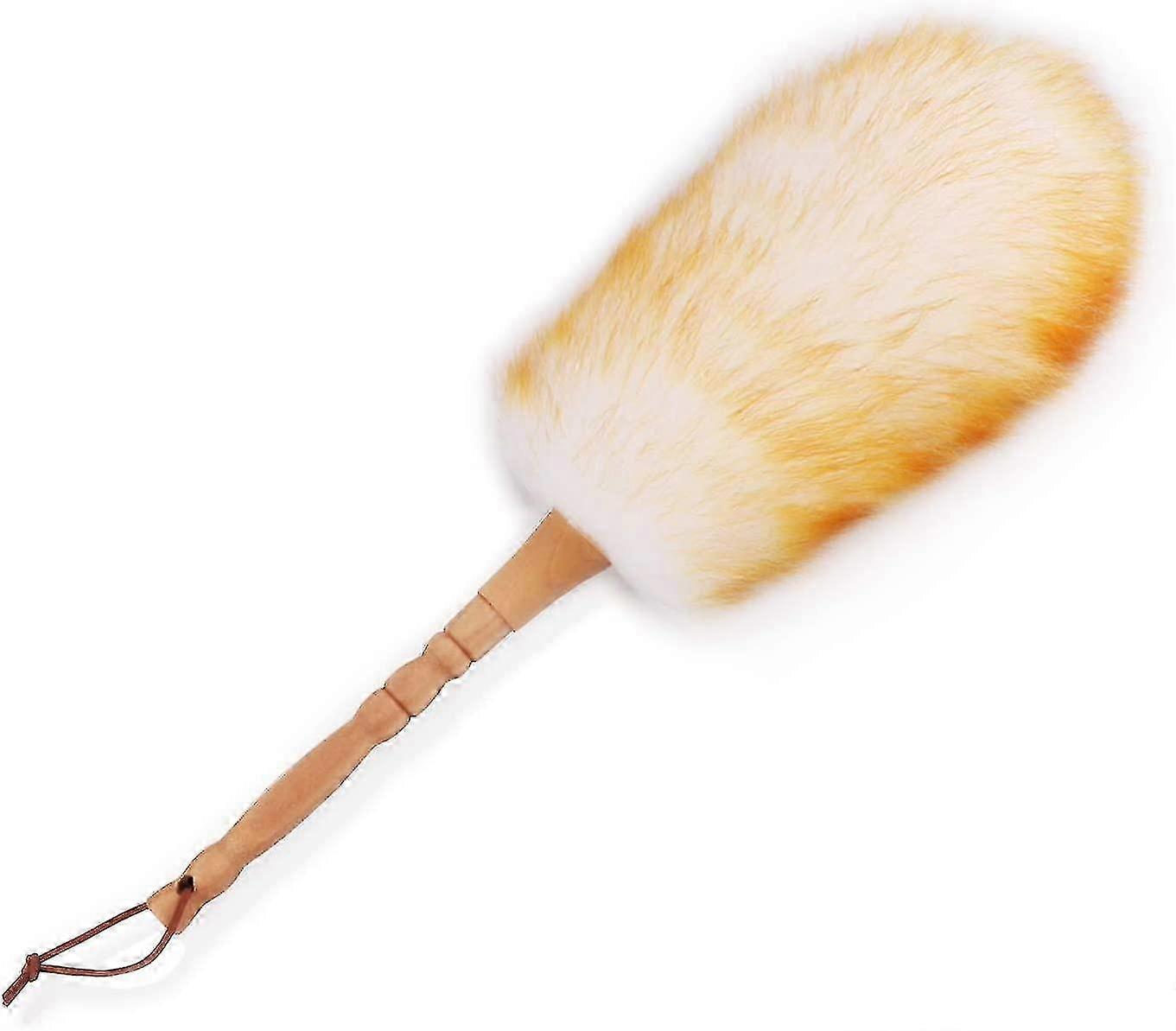 Lambswool Duster with Solid Wooden Handle,Leather Hang Strap,18.9 inch Long,Natural Feather Duster for Cleaning Ceiling Fans,Window Blinds,Computer Sc