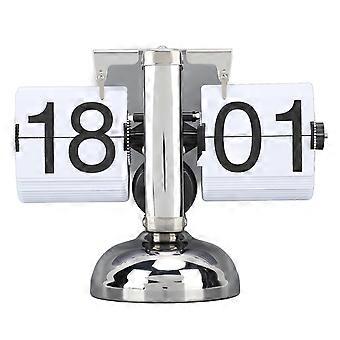 Large Number Battery Powered Flip Clock 24 Hour Display, 304 Stainless Steel Retro Tabletop Clock for Home Office White Pages