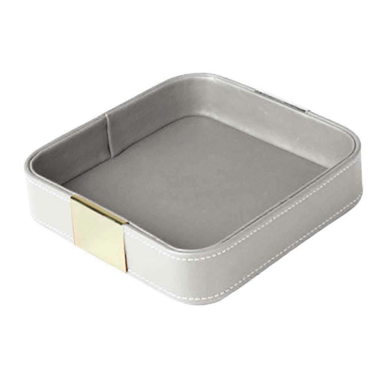 Leather Desktop Storage Tray for Watch Key Phone Wallet Container, B