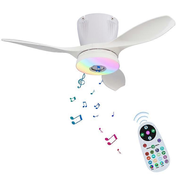 LEC016R RGB Dimmable Ceiling Light 3 Speeds Adjustable Fan Lamp with Bluetooth-Compatible Speaker, Solid Color Blades