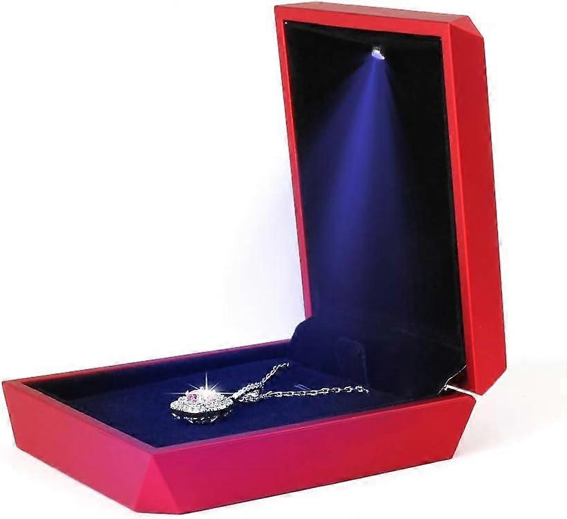 LED Pendant Necklace Box Bracelet Box Couple Jewelry Gift Boxes Case Small Jewelry Display for Proposal Engagement Wedding Valentine's Day (Red)