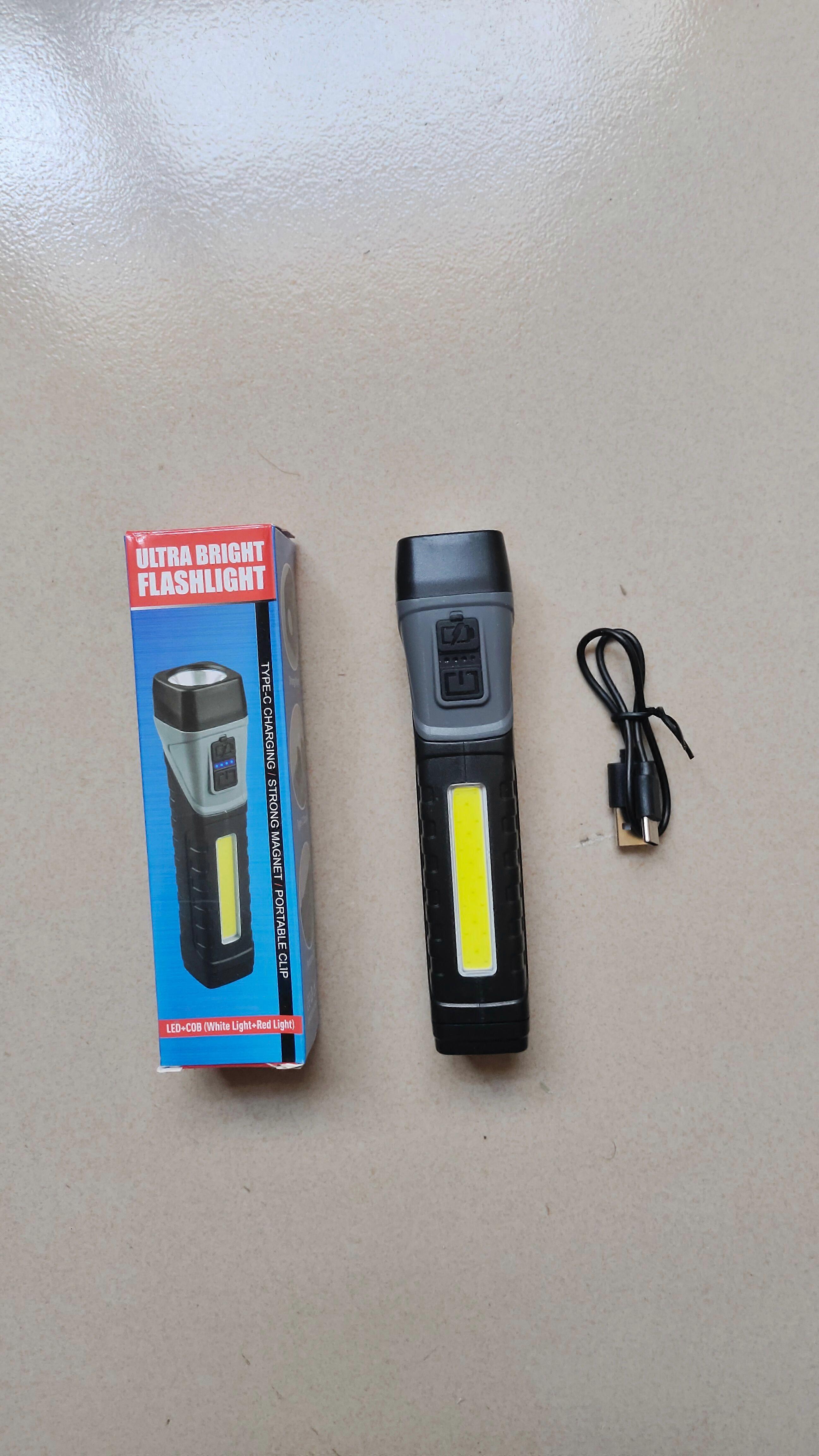 LED COB Flashlight Rotatable Head Torch Clip-On Portable Light Magnetic Tail Work Light 5-Mode Lighting Emergency Backup Light IPX4 Waterproof Type-C