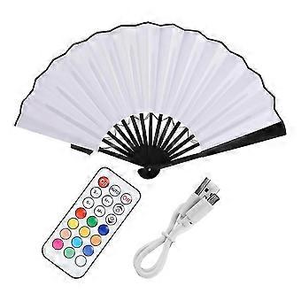LED Glowing Folding Fan with Remote Control White hwy