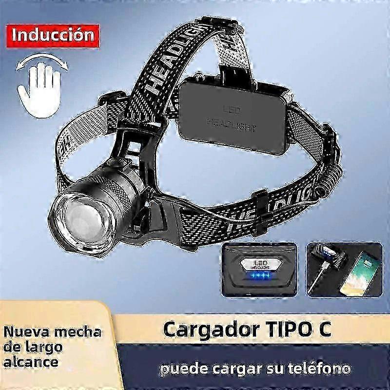 LED Headlamp with White Laser Sensor XHP90 USB Rechargeable Torch Lantern with 18650 Battery for Fishing, Camping, and Hunting