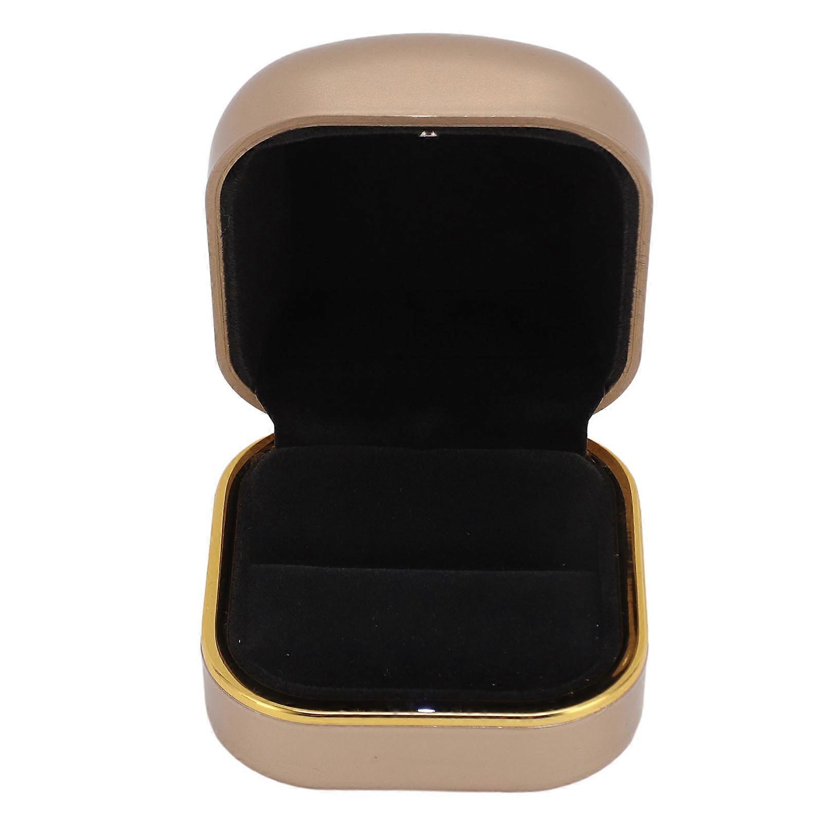 LED Ring Box Velvet Lining Romantic Luxury Ring Box Jewelry Case with LED Light for Anniversary Wedding Gold
