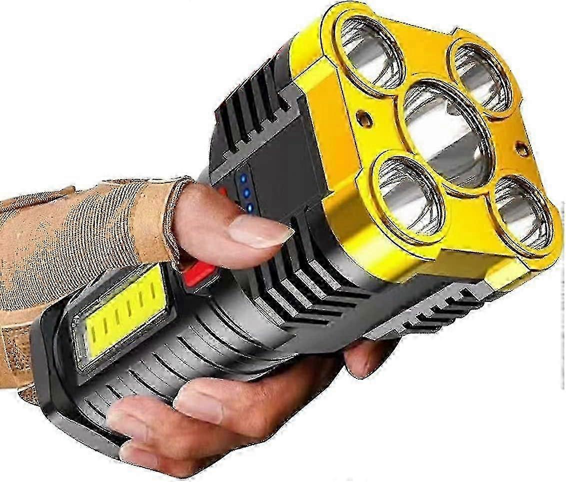 Led Torch Rechargeable, 5 Leds Torches Super Bright Flashlight With Cob Side Lights, 4 Lighting Modes Usb Flashlight, Torches Battery Powere