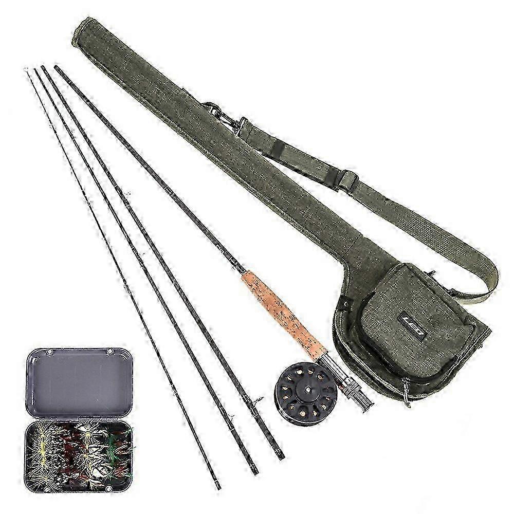 [Complete Fly Fishing Kit]This comprehensive set includes a fly fishing rod, pre-spooled reel, 20 fly hooks, and a storage bag, providing everything needed to start your fly fishing adventure [High-Quality Carbon Fiber Rod]The 9-foot, 4-piece carbon fiber rod features a comfortable cork handle and durable aluminum reel seat, ensuring a perfect balance of sensitivity and strength [Lightweight Pre-Spooled Reel]Crafted from sturdy ABS material, the reel comes pre-spooled with fly fishing line, allowing you to start fishing right away [Versatile Fly Hook Selection]20 assorted fly hooks neatly organized in a plastic case, offering a variety of options for different fishing scenarios [Waterproof Canvas Storage Bag]The included bag features a detachable, adjustable shoulder strap and two compartments for organized storage of all your fishing gear [Perfect Gift for Beginners]Specially designed for fly fishing novices, this kit makes an excellent gift for those looking to explore the art of fly fishing Specifications: Rod: 9 feet length, 4-piece carbon fiber rod Handle Material: Cork Reel: 5 or 5 pre-spooled with GLA line Reel Material: ABS Storage Bag Material: Waterproof canvas Package included: 1 x Fishing Rod 1 x Fishing Line 1 x Fishing Reel 1 x Bag 20 x Fly Fishing Flies 1 x Fishing Flies Storage Box 1 x 30m Backup Line 1 x 30m Main Line 1 x 2m Leader Line